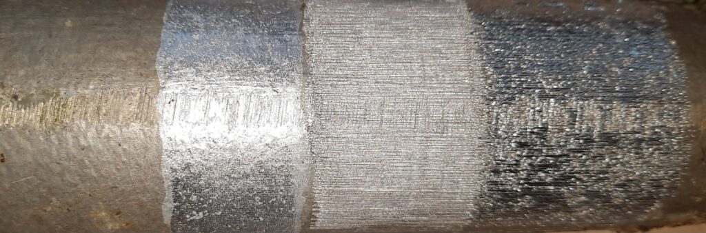 Varš (no kreisās uz labo) – oksidējies, notīrīts ar lielāku jaudu, notīrīts pareizi.